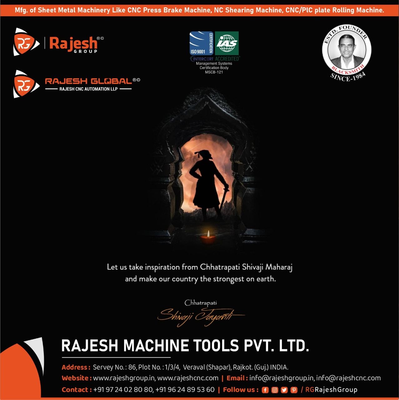 CHHATRAPATI SHIVAJI JAYANTI Let us take inspiration from Chhatrapati Shivaji Maharaj and make our country the strongest on earth. Rajesh Machine Tools Pvt. Ltd. Website : www.rajeshgroup.in, www.rajeshcnc.com Email : [email protected], [email protected] Contact : +91 97 24 02 80 80, +91 96 24 8