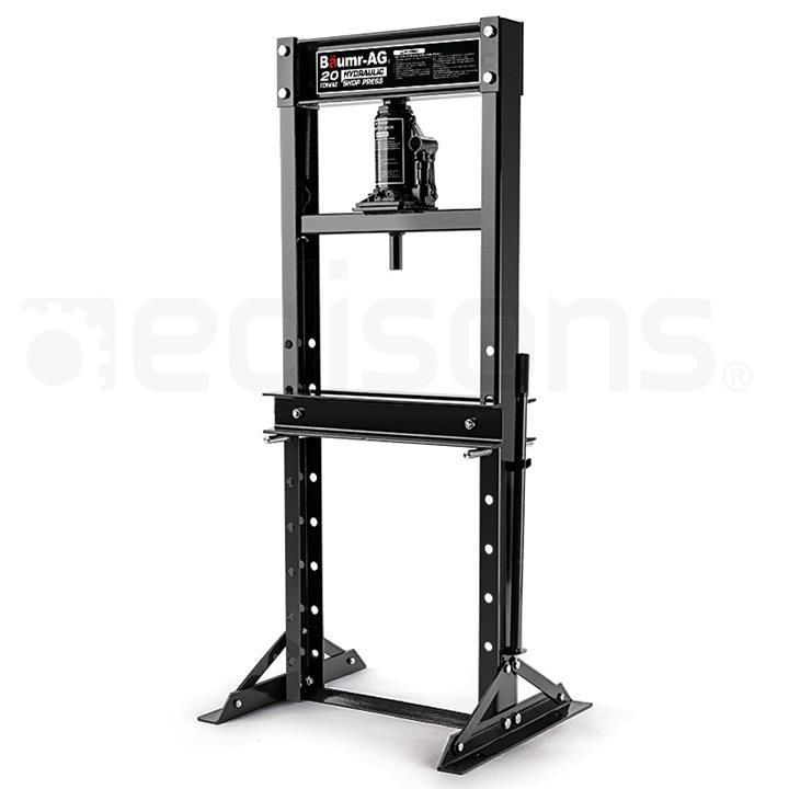Baumr-AG 20 Tonne Hydraulic Shop Press – T20 The NEW Baumr-AG 20T Hydraulic Shop Press is the perfect machine to properly execute your mechanical pressing tasks. This powerful unit is suitable for use in a professional setting and compact enough for home workshops. Its bottle jack produces 20 tonnes of continuous pressing force, making light work of removing and installing bearings, gears, bushings, rods, ball joints and much more. Its constructed with a high strength powder coated steel H-frame ensuring maximum durability and longevity. The du
