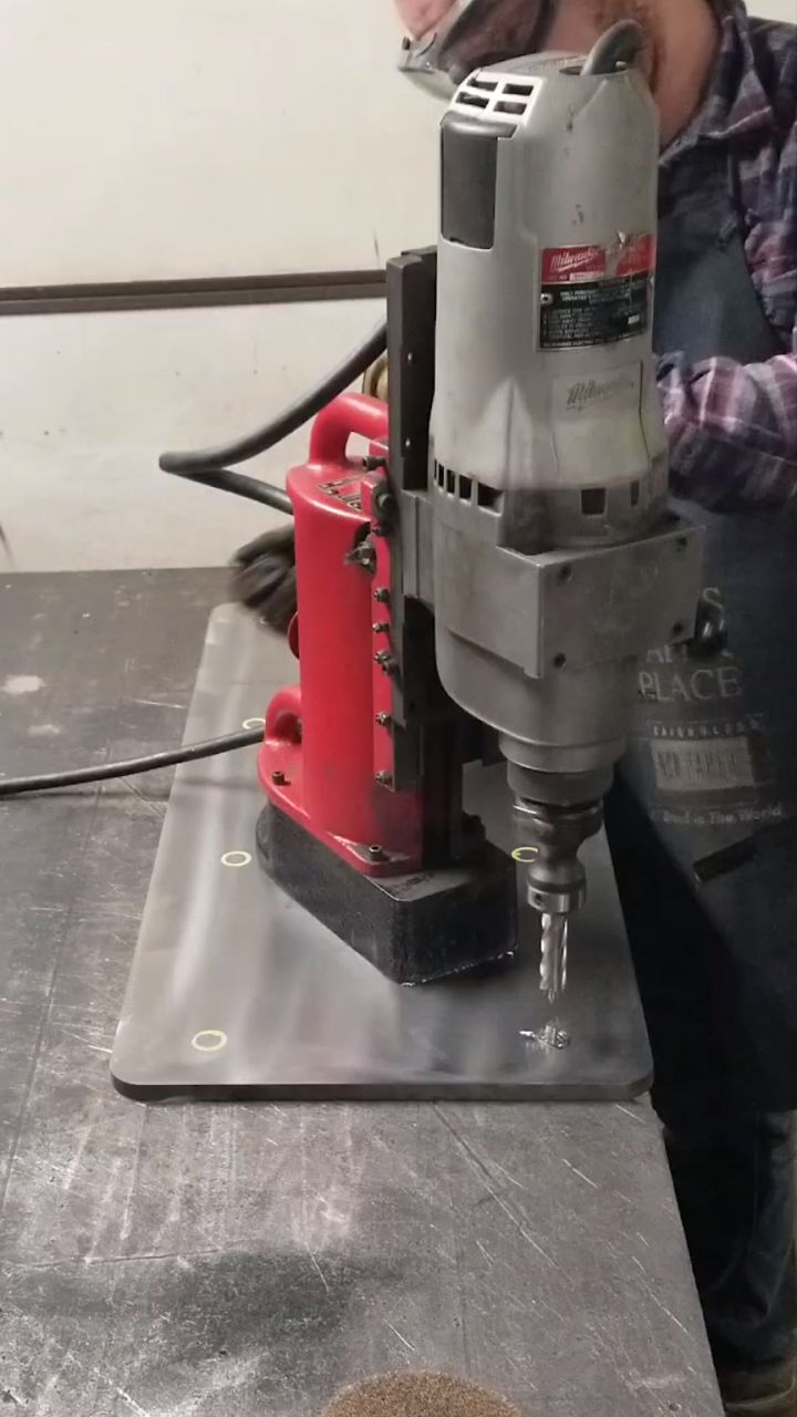 Drill × Tap With the help of our Milwaukee Mag Drill with the adjustable speed control we are able to drill × tap with ease! This half inch steel plate is ab integral part of our signature bolted base style. 1 of 8 for our current project of modern desks + tables. Looking for a ONE of a KIND Office? DM,Email or Call us to get your custom project started! iRcustom.com