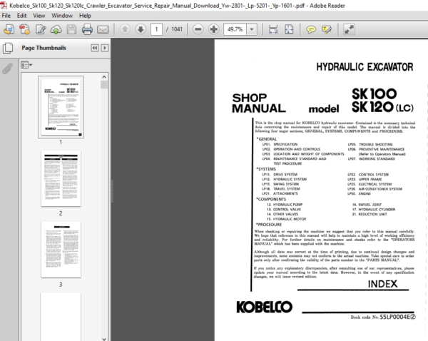 Kobelco Sk100 Sk120 Sk120lc Crawler Excavator Service Repair Manual Download ~ HeyDownloads – Manual Downloads