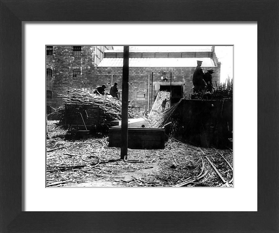 58×48 cm frame with high quality RA4 print made In Australia. circa 1901: Men unloading sugar cane at a processing plant in Natal, South Africa. (Photo by Topical Press Agency/Getty Images). 1900 1909, 3277497, agricultural machinery, black and white format landscape machinery agricultural machinery manufacturing top 055612 h sug cane proc, black white format landscape machinery agricultural machinery manufacturing top 055612 h sug cane proc, cane, factory, finance, group, h sug cane proc, harvesting, industrial equipment, industry, machinery,