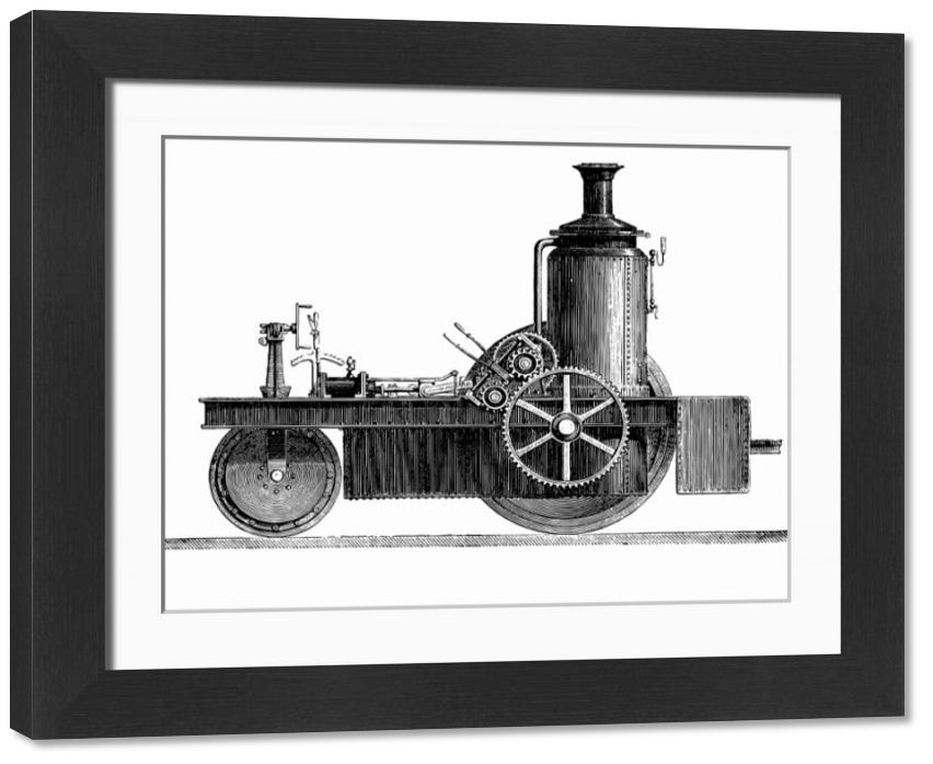 58×48 cm frame with high quality RA4 print made In Australia. Antique illustration of a Thomson Road Steamer. 1870 1879, 19th century, 513422610, 60024, 66696, 78279, american culture, atlantic ocean, biological culture, black color, business finance and industry, cultures, digitally generated image, drawing art product, energy, engine, equipment, etching, fuel and power generation, generator, german culture, grille, image created 1870 1879, image created 19th century, industrial, industry, isolated, land vehicle, locomotive, machine part, mach