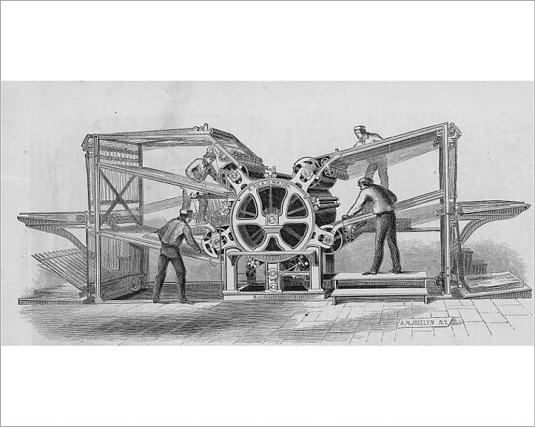 10×8 Inch (25x20cm) Print. Engraving of the Hoe rotary press. (Photo by Kean Collection/Getty Images). tools, machinery, press, industrial equipment, attribute, rotary phone, t545532, 2681800, t545532 printing press machinery male group people black white picture attribute prints engravings image type, t545532 printing press machinery male group people black and white picture attribute prints and engravings image type. Image supplied by Fine Art Storehouse